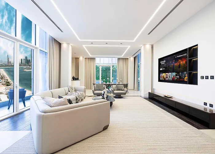 Nestled within the iconic Palm Jumeirah, the Oceana Resort Luxury Sky Villa redefines opulence, presenting an unparalleled escape on the world's largest man-made island. This lavish sanctuary invites guests to immerse themselves in a lifestyle of grandeur with stunning panoramic views that stretch across the azure waters of the Arabian Gulf. Here, every moment is elevated by the seamless blend of luxury and comfort, promising an unforgettable retreat.