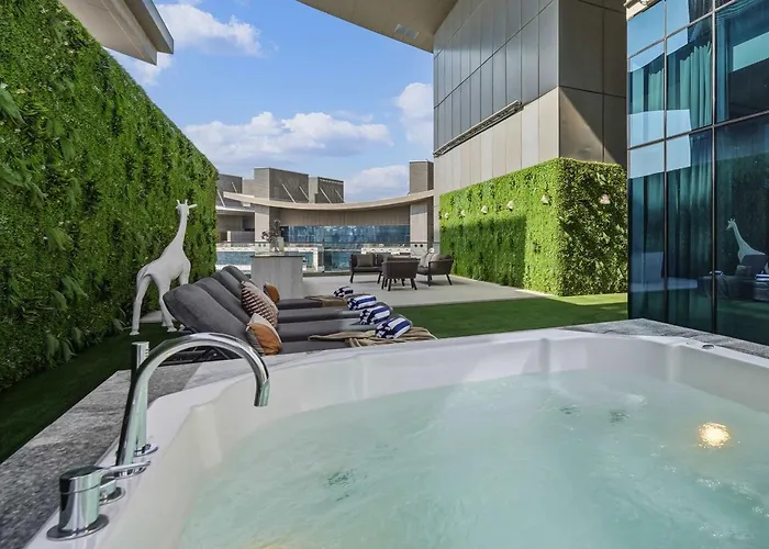 Situada a unos 25 minutos a pie del Puerto Deportivo de Dubái, la Palm Penthouse Sky Villa - Vast Terrace & Jacuzzi By Exclusive Holiday Homes Dubái ofrece acceso a varios lugares turísticos de la zona.